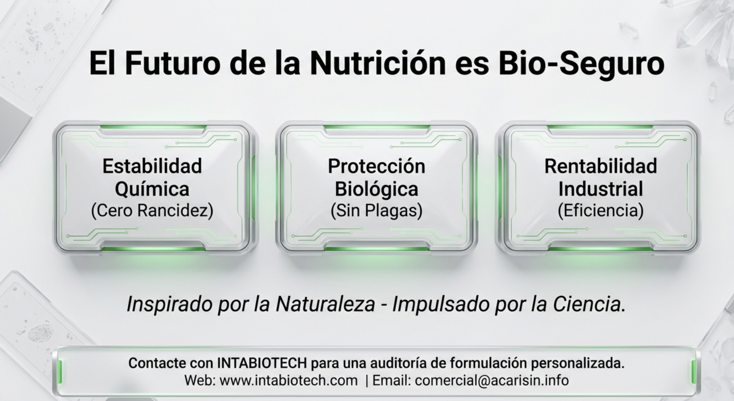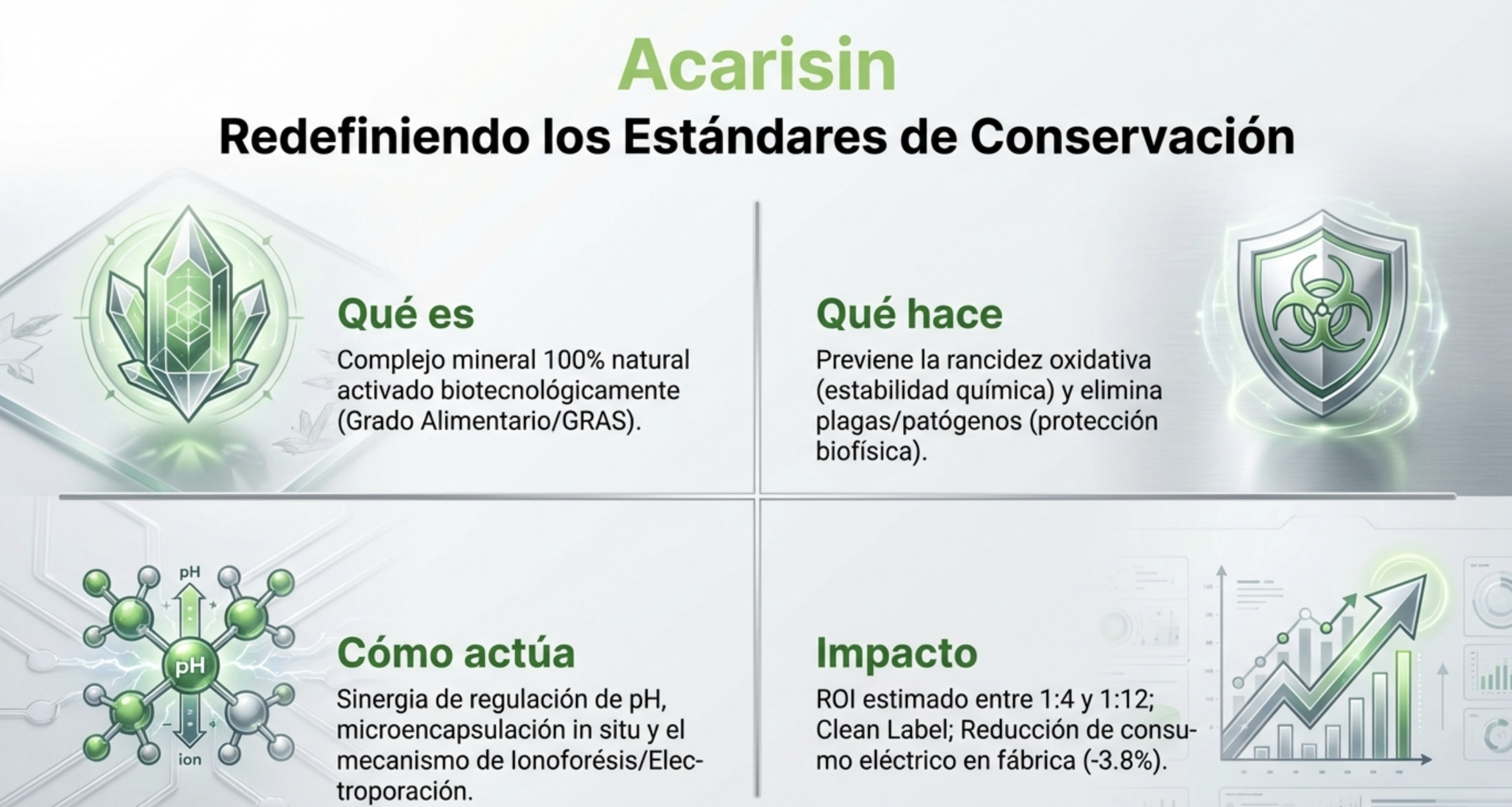 En un mercado donde la eficiencia productiva y la seguridad alimentaria son innegociables, presentamos ACARISIN™, una formulación biotecnológica 100% mineral y natural.