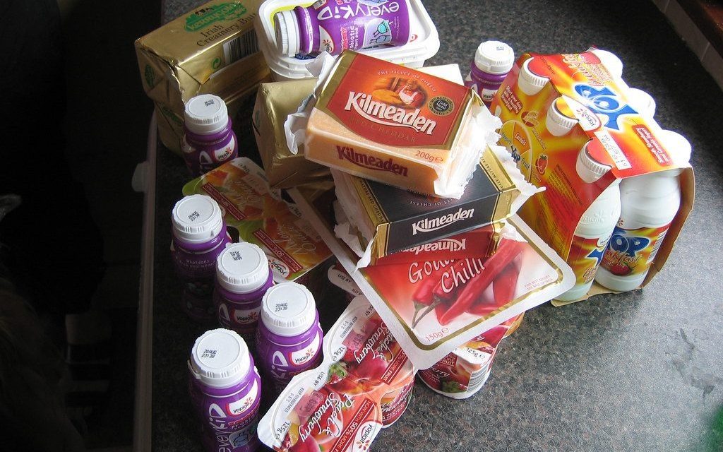 Yogures refrigerados, productos probióticos, crema agria, salsas, aderezos, requesón, queso fresco, kéfir y otros alimentos lácteos cultivados análogos.